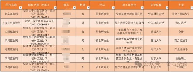 3)还有证监会的录用名单,除了各大券商、律所◆■★■★◆、会所、银行,同样有不少头部公募和私募的同学。比如易方达,比如景顺长城,比如私募泓德基金。