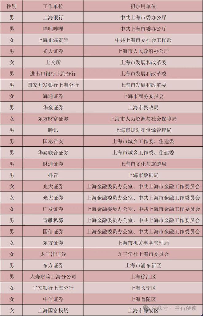 2)4月14日,上海税务局公布了公录用名单◆★■■◆,一名原单位在摩根基金的金融从业者被拟录取,岗位为国税局上海普陀区一级主办及以下。